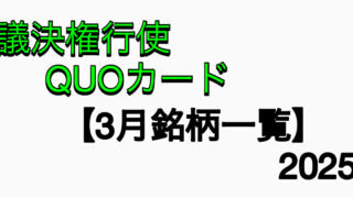 議決権行使 【3月株主総会】議決権行使でQUOカードがもらえる銘柄一覧【隠れ優待】2025 株主優待といえば、食事券や自社商品が思い浮かぶと思います。しかし、実は「議決権を行使するだけでQUOカードがもらえる」という隠れ優待が存在することをご存知でしょうか。前回12月権利銘柄一覧に引き続き、本記事は3月に実施された実績のある銘柄を一覧にまとめましたのでその紹介をしていきたいと思います。 2025.09.20 議決権行使